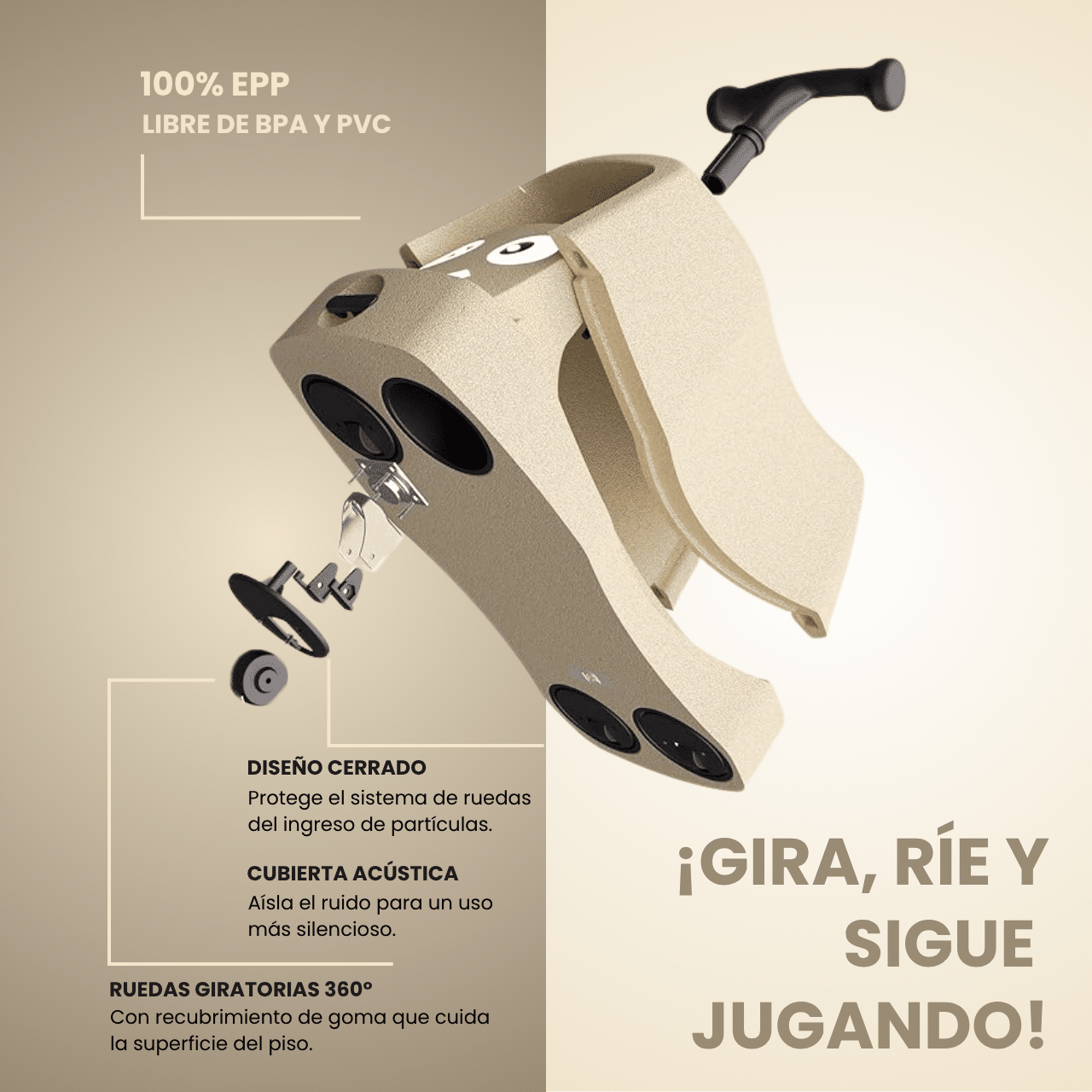 Poly Go Caminador Para Bebés Niños 4 En 1 Material Seguro_Beige